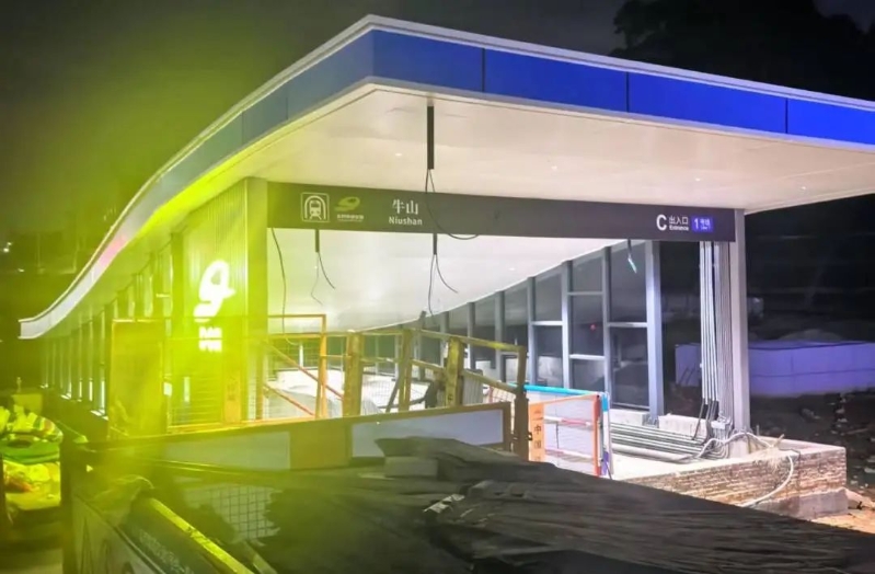東莞地鐵1號線東莞地鐵1號線1302段牛山站C出入口飛頂施工順利完成