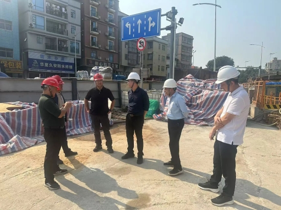4月1日,東莞市軌道一號線建設發展有限公司副總經理葉森立到東莞地鐵1號線進行調研指導。調研組在連平站施工現場,重點對頂管設備的安裝調試、始發端頭地基加固以及管節生產等情況進行了檢查,并對當前施工進度進行詳細了解。葉森立對項目各項工作表示認可,他強調:地下頂管施工方案需要綜合考慮多方面因素,在施工過程中,要嚴格按照工作流程進行操作,確保工程施工質量和工期,避免發生任何安全事故。